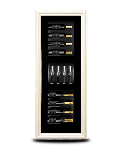 Es posible elegir entre dos equipamientos interiores diferentes. La versión con un único compartimento para 12 botellas o la versión con dos compartimentos para 4 botellas y un compartimento para copas. El expositor horizontal de botellas es un icono de la marca en todo el mundo.